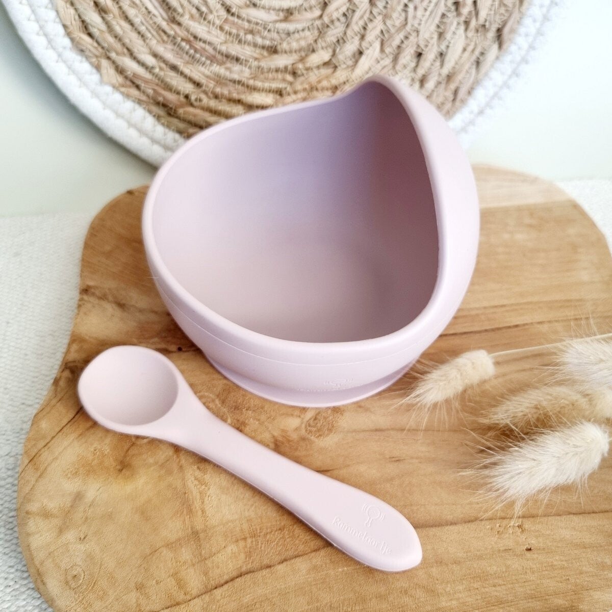 Siliconen kom met zuignap en lepel Deze siliconen kom inclusief buigzame lepel helpt je vast voedsel te introduceren en je baby vervolgens over te zetten op zelfvoeding. De zuignap zorgt ervoor dat de kom niet verschuift of kantelt. Geweldig voor gebruik op kinderstoel trays of tafels. De kom is ontworpen met een gebogen zijkant, de hoge achterkant voorkomt morsen en houdt eten in de kom!Gemaakt van 100% food-grade siliconen en BPA-vrij - gecertificeerdDe handige zuignap zorgt ervoor dat de kom niet over de tafel of het blad verschuiftSiliconen zijn vaatwasmachinebestendig, waardoor schoonmaken een fluitje van een cent is. Het is ook vlek- en geurbestendig.