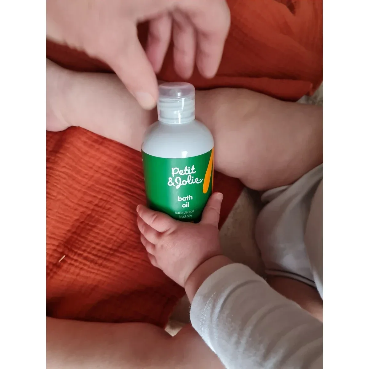 Petit&Jolie® badolie reinigt de huid op een milde wijze tijdens het bad. De volle emulsie heeft een zeer verzorgende werking waardoor de babyhuid na het bad zacht en soepel aanvoelt. Hierdoor is de badolie geschikt voor baby’s met een (zeer) droge huid.
